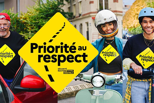 La campagne “Priorité au respect” invite chaque usager – automobiliste, cycliste, piéton, conducteur de deux roues motorisés ou d’EDPM– qui partagent le même espace à adopter un comportement bienveillant et attentif. Le respect du Code de la route doit nécessairement s’accompagner du respect d’autrui, quel que soit son mode de déplacement.